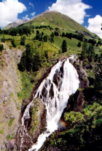 According to a legend that can be heard in remote villages, the white-faced beauty Muztau adorns herself with colorful stones and therefore there are many gems in the Altai Mountains. But most of all she likes bracelets made of rainbow splashes that appear over waterfalls. She chose for herself the Kok-Kol waterfall, which in sunny weather is decorated around with a rainbow of water droplets.