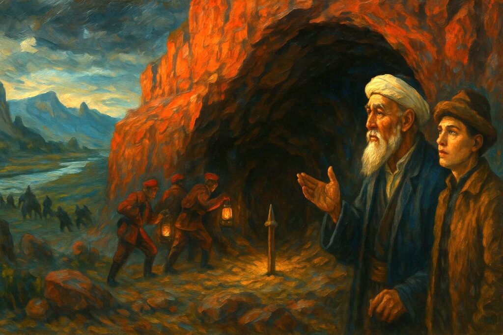 Менің анамның әкесі – Сүлейменов Иісбек бұл өңірде ұзақ жылдар бойы мал бағып, осы жердің сырын жақсы білетін. Ал оның атасы Есенгелді бұл жерлердің Бөгіш руына тиесілі болғанын айтып отыратын. Мың бие туралы аңыз біздің әулетімізде ұрпақтан-ұрпаққа ауызша жеткен. 1933 жылы бұл қазына туралы қауесет қызылдарға жетеді. Аңызға айналған байлықты табу үшін олар арнайы жасақ жібереді. Ауыл халқы үрей құшағында күн кешеді, өйткені қызыл әскерлер оларды азаптап, қазынаның құпиясын айтуға мәжбүрлейді. Менің анамның әжесі – Кәмила апаның айтуынша, сол бір сұмдық жылдары құпияны білуге тырысқан сарбаздар бір қойшыны қинап, айуандықпен өлтіреді. Олардың мақсаты аңыздың шындығын анықтап, жасырылған байлықтың орнын білу еді. Алайда қанша жерден іздесе де қазынаны таба алмайды. Жылдар өтіп, заман өзгерсе де, мың бие қазынасы туралы аңыз өлмеді. Кейіннен ауыл ақсақалы Қыдырмолла Сұлтан Аймұхамбетовті дәл сол үңгірге ертіп барады. Үңгірдің кіреберісінен темір сынығын табады. Белгісіз біреулердің қазынаны табуға әрекеттенгенінің ізін көреді. Қызыл Жартастың қойнауында шынымен де мың бие қазынасы жасырылған ба? Оны ешкім білмейді. Бәлкім, байлық, әлі де аңызда айтылған долана қазығын тауып жол ашатын өз мұрагерін күтуде.