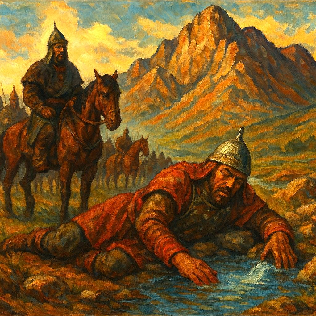 На обратном пути, проходя через земли Тарбагатая, множество воинов стало испытывать жажду, страдая от нехватки воды. Когда они достигли горный хребет этого края, то увидели многочисленные водные источники. Жаждущие воины кинулись к воде, чтобы наконец напиться, но их остановил один из старейшин. Он встал и сказал: «Вода здесь ядовитая. Ее пить нельзя. Не пейте!». Но Сайхун батыр не выдержал и выпил, а вскоре заболел и покинул этот мир. Похоронили Сайхун батыра здесь же, где и умер, а хребет прозвали его именем. Слово «Сайхун» постепенно претерпело изменение в звучании и превратилось в слово «Сайкан».